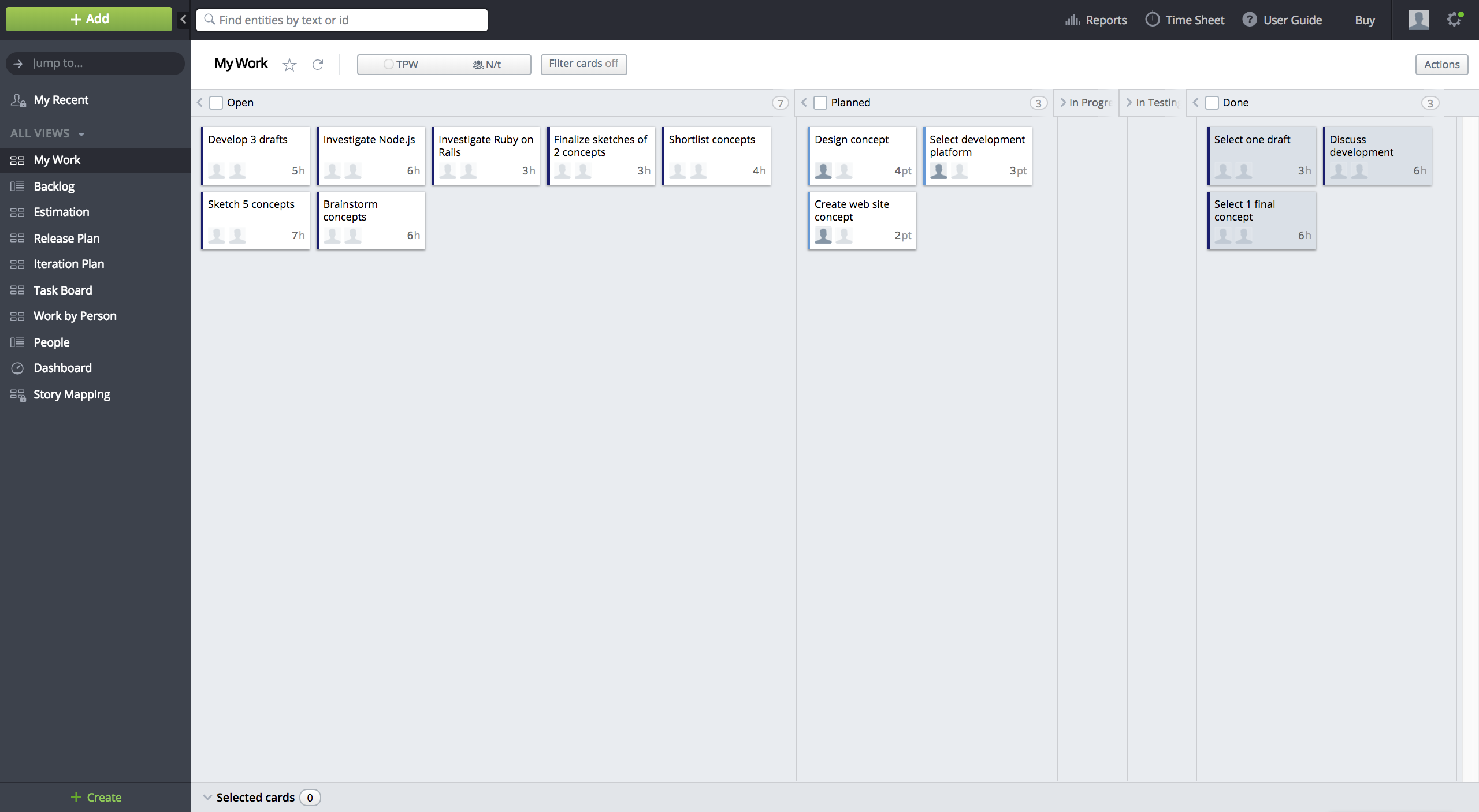 Die Software bietet Scrum- und Kanban-Boards, Reports in Form von Burndowns und Dashboards und die Integration mit Continuous-Integration-Informationen aus der ALM-Suite.