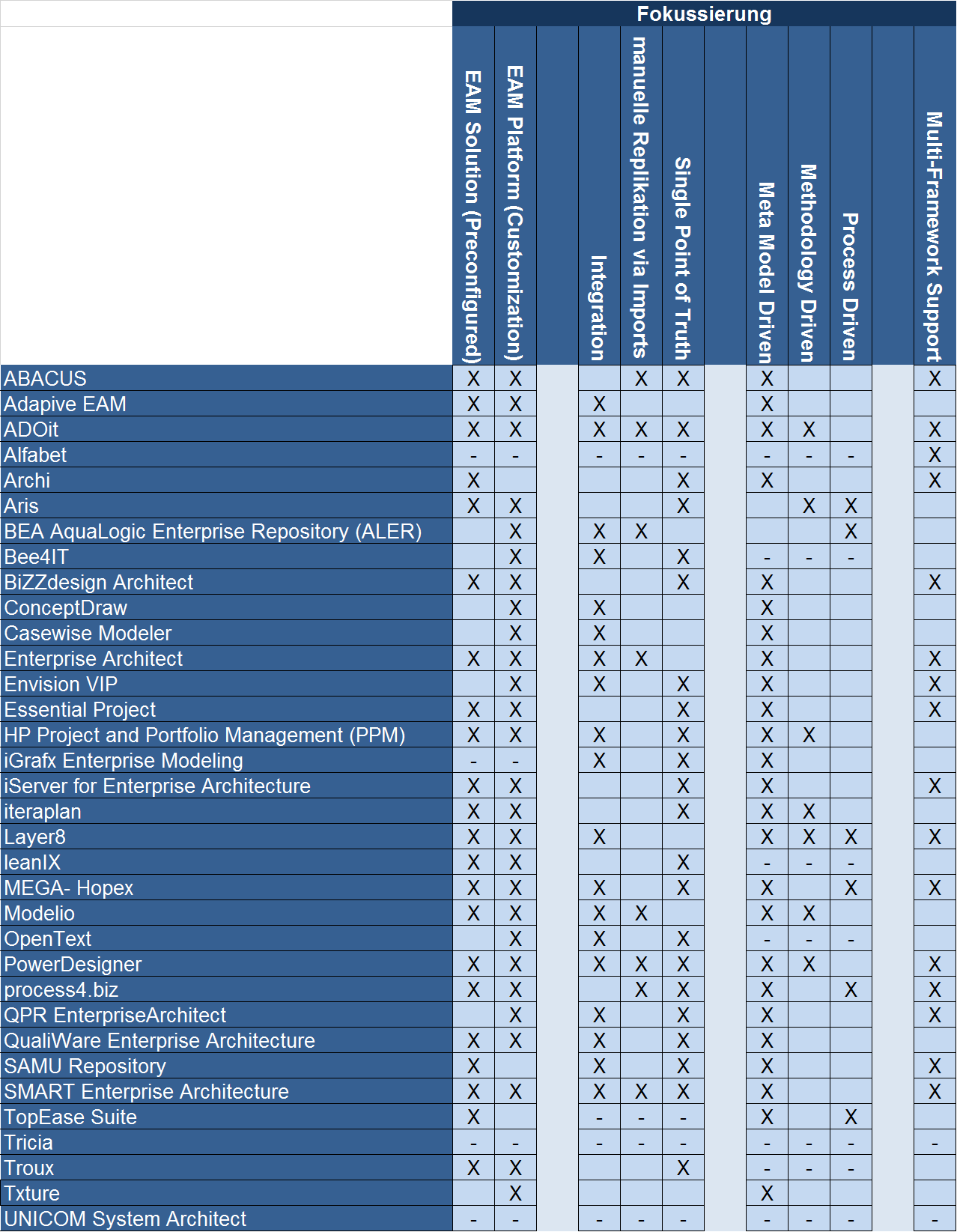 EA-Frameworks – Teil 3: Ein Vergleich von 34 EA-Tools