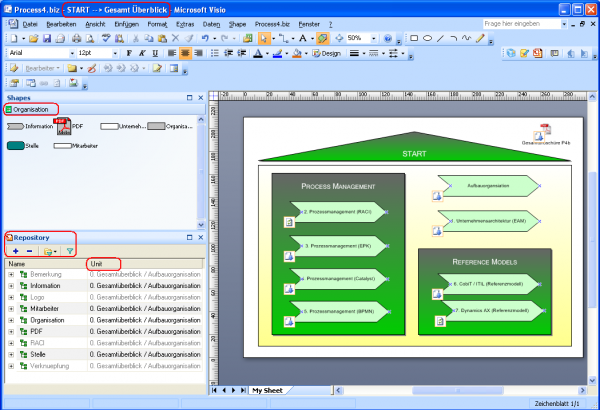 Import/Export von/nach: Visio, Excel, WebSphere BPMN, Rational Software Architect UML, u.a.