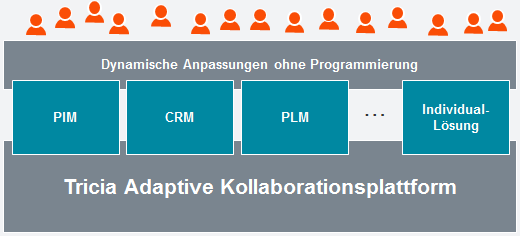 Tricia ist eine Kollaborationsplattform, die aus mehreren Modulen (PIM, CRM, PLM, …) besteht. Etwa dient das Modul PIM dem kollaborativen Projekt- und Informationsmanagement.