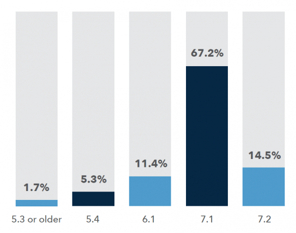 Weiterhin ist 7.1 das beliebteste IBM i Betriebssystem. Der Anteil von 7.2 hat allerdings im Vorjahresvergleich stark zugenommen: 2015 = 3,8% versus 2016 = 14,5%.