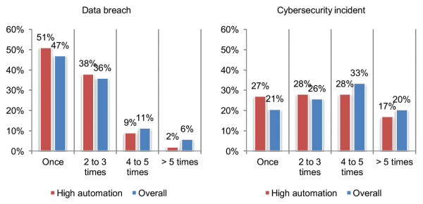 Erstmals erfasste die Cyberresilienz-Studie die Auswirkung von Automatisierung. Dreißig Prozent der Umfrageteilnehmer aus Deutschland gaben an, dass ihr Unternehmen Automatisierungstechnologien wie Identitätsmanagement und Authentifizierung sowie Incident-Response-Plattformen und Sicherheitsinformations- und Ereignismanagement-Systeme (SIEM) in wesentlichem Umfang einsetzt, um auf Cyberattacken zu reagieren. Siehe Abbildung 2.