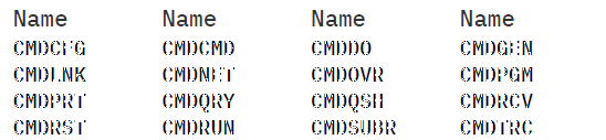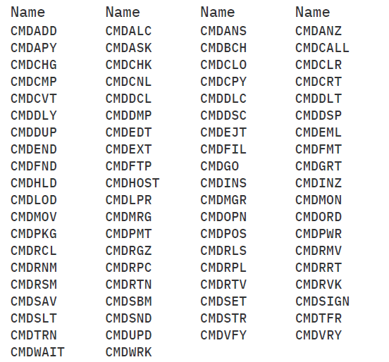 DSPOBJD(*ALL/*ALL) OBJTYPE(*CMD) OUTFILE(CMDOUT)