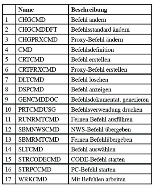 Auch können weitere Gruppen gebildet werden, welche sich nicht nur auf Aktionen oder Objektrelationen beschränken, sondern auch inhaltlicher Natur sind (Ausgaben zu DSPCMD in Abb. 1.7 in Teil 1). Mit dem gezeigten exemplarischen Ansatz kann somit der Grundstein für Unterstützungen der Anwender der IBM i Infrastruktur gelegt werden.