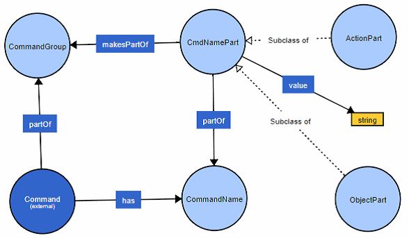 Die jeweilige Zuordnung der Namensteile zu einer Befehlsgruppe erfolgt mit der Beziehung makesPartOf.