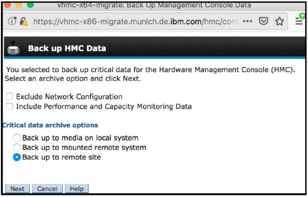 Nachfolgend einige Screenshots (Abb. 3.11a … 3.11f) vom Backup der vHMC (x86) in der Testumgebung, es wurde ein Backup zu einer remoten IBM i-Partition durchgeführt.