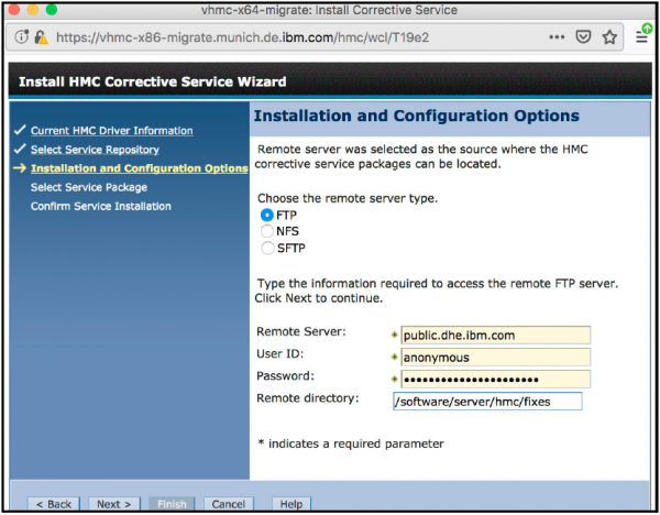 - Download von einem IBM FTP-Server direkt auf die HMC/vHMC