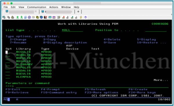 Siehe Beispiel: IBM®i Befehl – WRKLIBPDM und Abbildung 6.