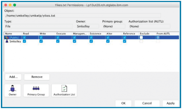 Über die IFS-Schnittstelle können nun spezifische Berechtigungen für jedes Verzeichnis und jede Datei angezeigt und aktualisiert werden, siehe Abbildung 11.