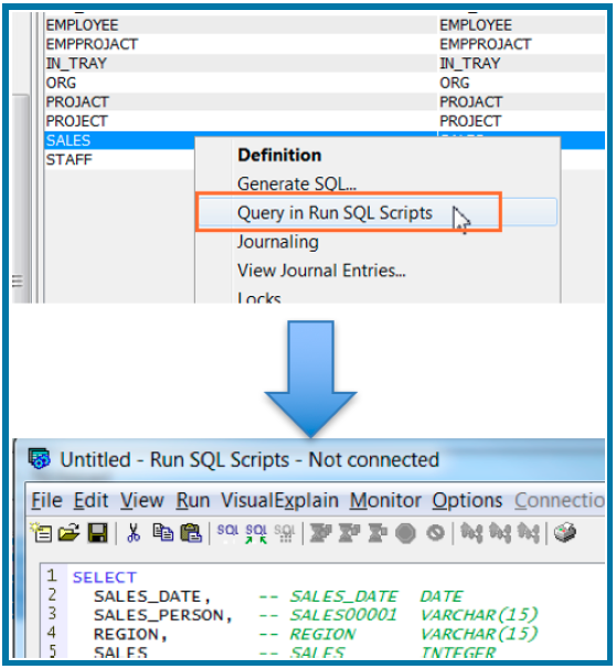 – Query in Run SQL Scripts