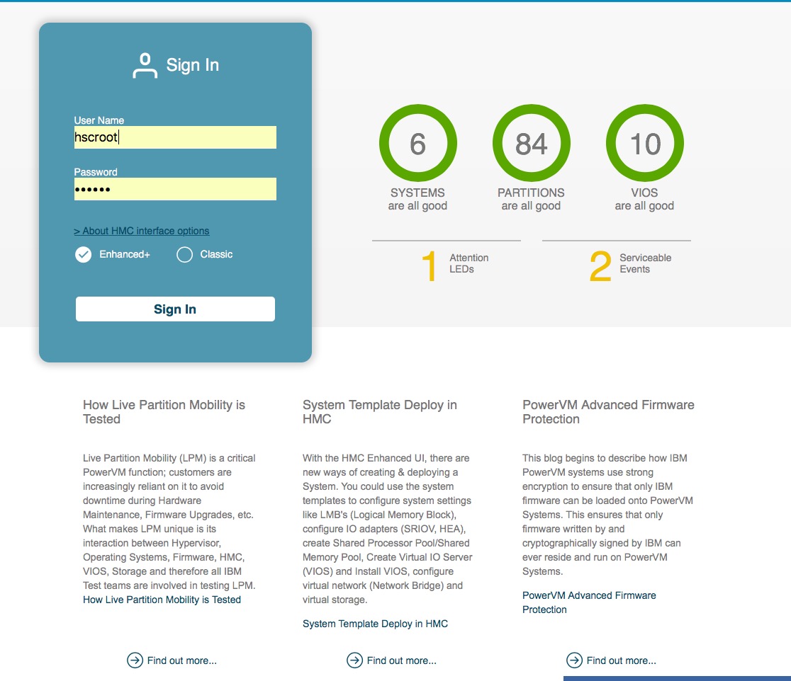 Diese verschiedenen Implementationen unterscheiden sich in der Oberfläche und der Bedienung nicht voneinander. Sie basieren alle auf einer IBM Linux Variante für die HMC. Während man am Web-Interface arbeitet, sollte kein Unterschied bemerkbar sein und auch bei der Anwendung von anderen Lösungen in diesem Zusammenhang, wie beispielsweise PowerVC, Live Kernel Update, GDR (Geographically Dispersed Resiliency), sollte sich kein Unterschied ergeben.